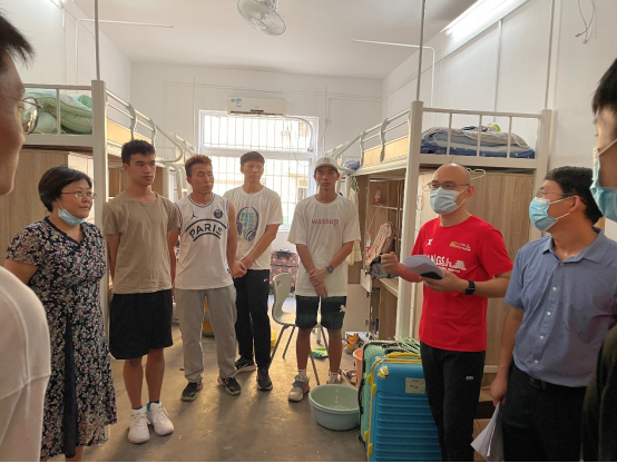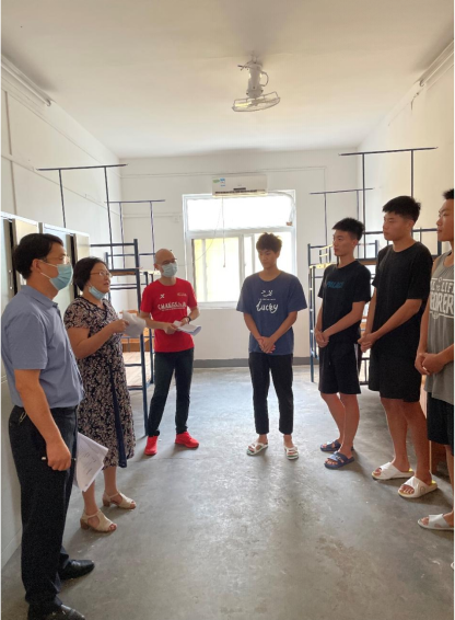 在走访研究生宿舍过程中,刘良辉副院长深入每间宿舍,认真查看宿舍内的各项设施,耐心细致地和同学们交流,详细地了解每位新生的名字、家乡籍贯、本科专业等信息,并给予生活、学业等方面的建议。张毅恒副教授对研究生新生提出了殷切的希望,希望同学们积极肩负起自己的责任,牢记“艰苦朴素,求真务实“的校训,吃苦在前,享乐在后,登高望远,勇攀学术高峰。辅导员陈老师嘱咐同学们要认真做好防疫工作,注意个人防护,加强安全防范意识,谨防上当受骗。