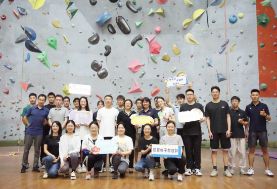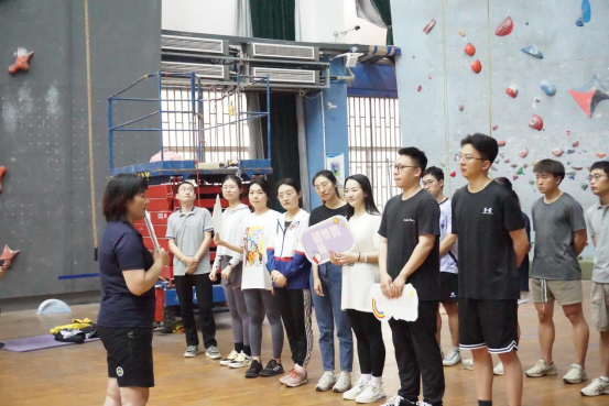 辅导员老师们还集中观看了我校攀岩运动员在速度攀岩、难度攀岩和攀石三个项目的表演展示,并在助教团队的带领下进行速度攀岩与难度攀岩尝试,通过亲身体验的方式感受攀岩运动的魅力与乐趣。