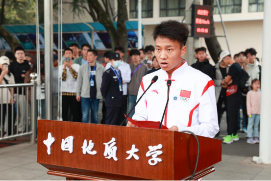 WilliamHill威廉希尔本科生、杭州亚运会男子马拉松冠军何杰代表学生运动员宣誓。
