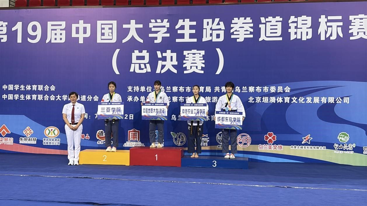 7月6日至11日,第19届中国大学生跆拳道锦标赛(总决赛)在内蒙古乌兰察布市体育馆举行,本次比赛由中国学生体育联合会主办,中国学生体育联合会大学跆拳道分会执行,共有来自全国155所高校的1090名运动员、教练员参赛。我校跆拳道队谢欣怡同学参加了甲组女子个人高阶品势和甲组女子个人段位品势两个项目的比赛。