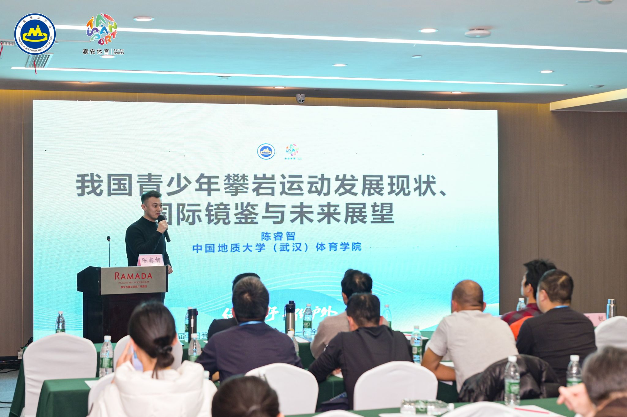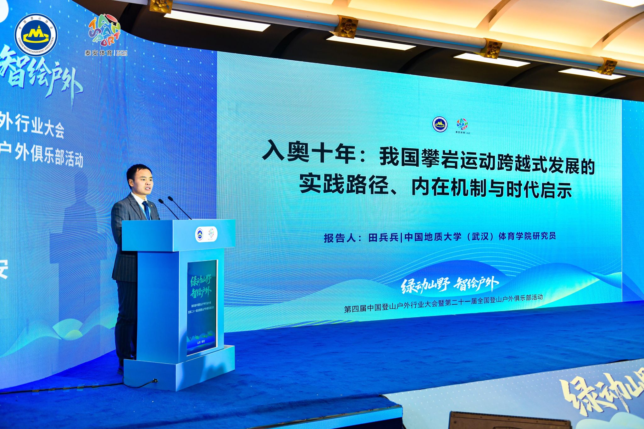 通讯员 严紫萱 田兵兵)1月24日至25日, “绿动山野 智绘户外”第四届中国登山户外行业大会暨第二十一届全国登山户外俱乐部活动在山东省泰安市隆重举行。本次盛会汇聚国家体育总局登山运动管理中心、中国登山协会、地方政府、全国高校、行业机构及企业代表,围绕登山户外产业发展、行业协作与标准化建设等核心议题共商发展大计。学院李元院长、黄静老师、张毅恒老师、方银老师、何鹏飞老师、姬庆老师、陈睿智老师、田兵兵老师等一行受邀参会,其中五人分别作主旨报告与专题分享,创下学院在同一届国家级行业大会上的报告人数纪录。