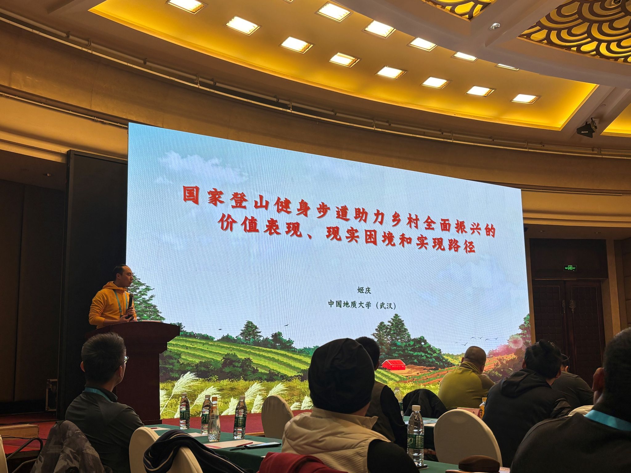姬庆老师聚焦乡村振兴战略,作《国家登山健身步道助力乡村全面振兴的价值表现、现实困境和实现路径》专题报告。他认为,国家登山健身步道作为绿色基础设施,在激活乡村产业、吸引人才回流、促进文化复兴等方面具有重要价值,针对当前规划同质化、运营低效等问题,提出“多规合一+一村一策”设计、培育多元运营主体等解决方案,为“体育+乡村振兴”提供了实践路径