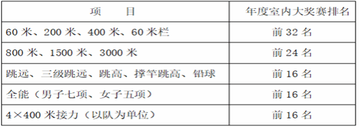 时隔半月,2026年全国室内田径锦标赛于3月28日在山东济南展开巅峰对决。作为国内室内田径年度最高级别赛事,汇聚了全国顶尖选手。同时本届锦标赛对参赛资格设置了严格门槛,运动员需要满足至少3次参加Ⅲ级及以上赛事并2次达一级成绩以上(2026年新注册运动员除外),并在本年度室内田径大奖赛中单项成绩总排名达如下名次才可报名: