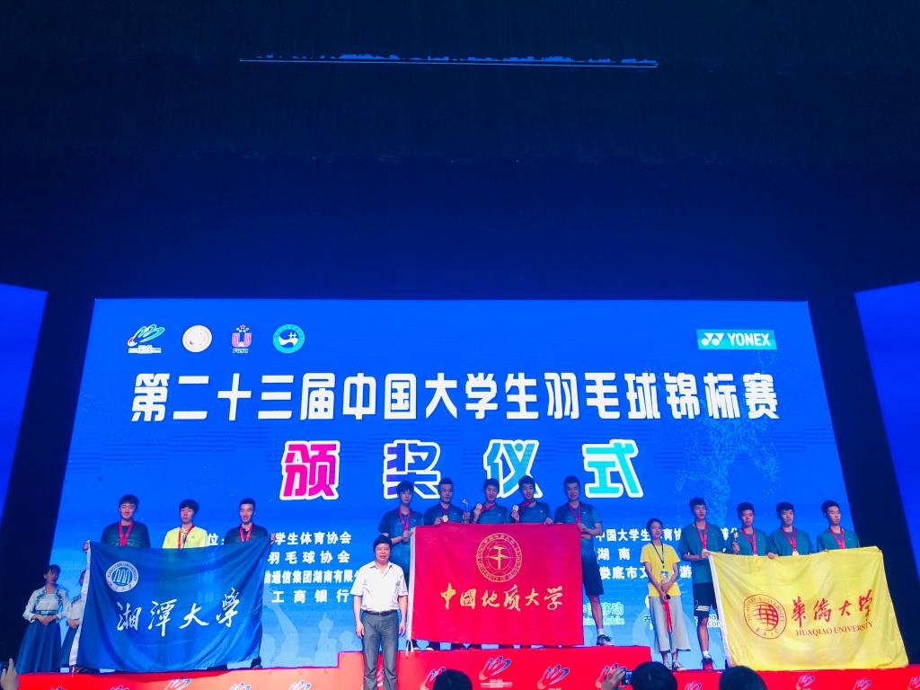 7月19日至24日,第二十三届中国大学生羽毛球锦标赛在湖南娄底举行。我校羽毛球队共派出11男6女,共17名高水平运动员参赛。经过7天激烈的角逐,在本届大赛中我校羽毛球队取得了乙组男子团体第一名、乙组男子双打第一名、乙组男子双打第二名、乙组混合双打第三名、乙组男子单打第五名、乙组混合双打第五名和乙组女子双打第五名的优异成绩。