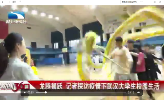 湖北电视台以“疫情下武汉大学生校园生活”为题对我校龙狮运动协会进行了采访.mp4