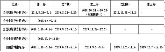 2019年全国初级山地户外指导员开班通知
