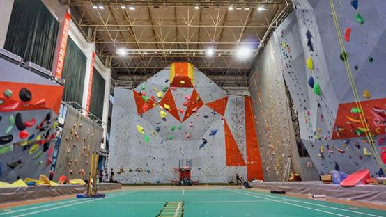 williamhill中文攀岩馆岩壁最高15米,两边13米,最长屋檐5米,小屋檐3米半,国际标准速度赛道和速度赛岩壁,高15米,倾斜度15°以及8组标准抱石墙。岩馆内配备一间专业的训练房,在训练房里有大斜板、大屋檐、直板、自制的指力板等一系列的专项技术练习的场地。目前是国家攀岩集训队、湖北省攀岩队的训练场地,也是国内高校最为专业和完备的攀岩馆。